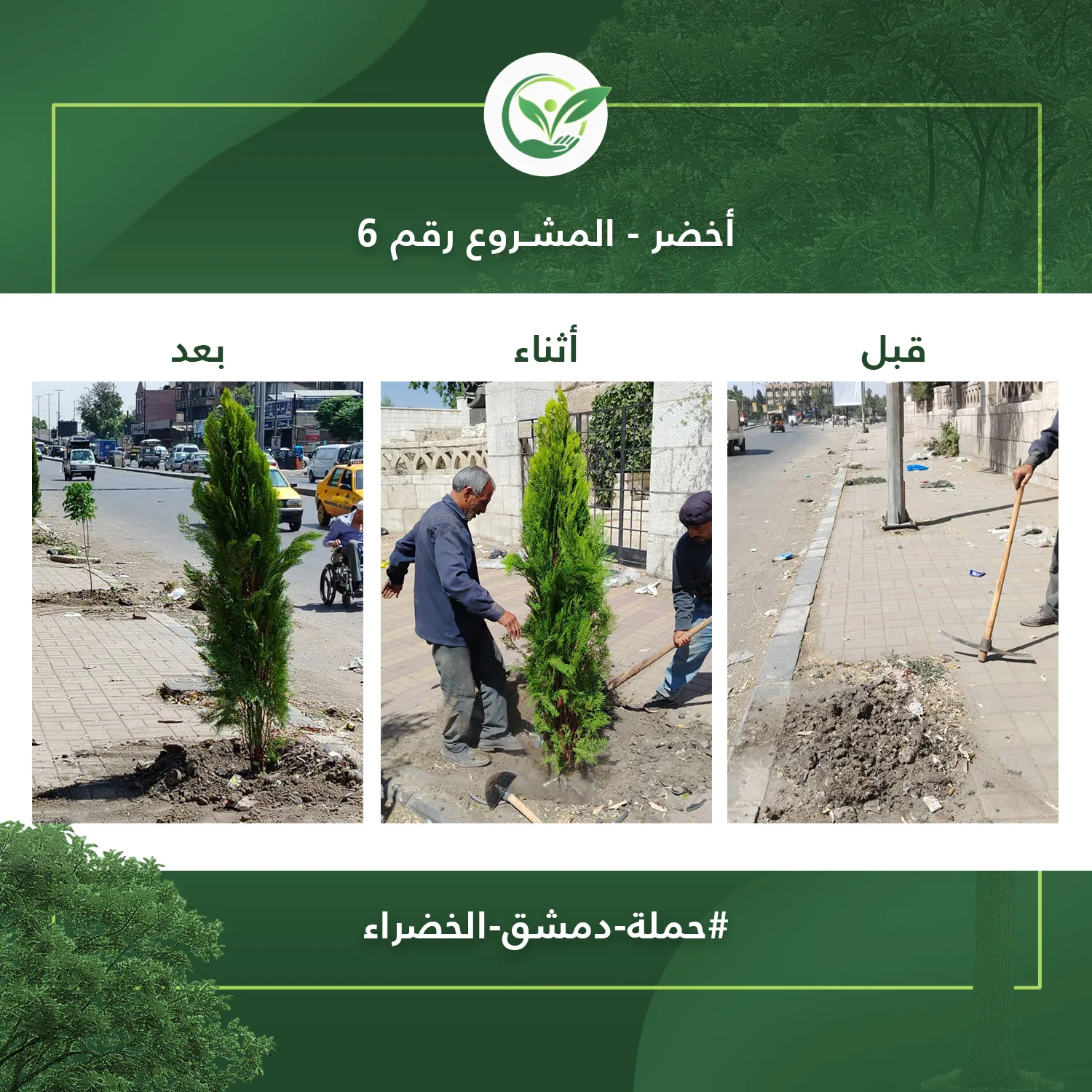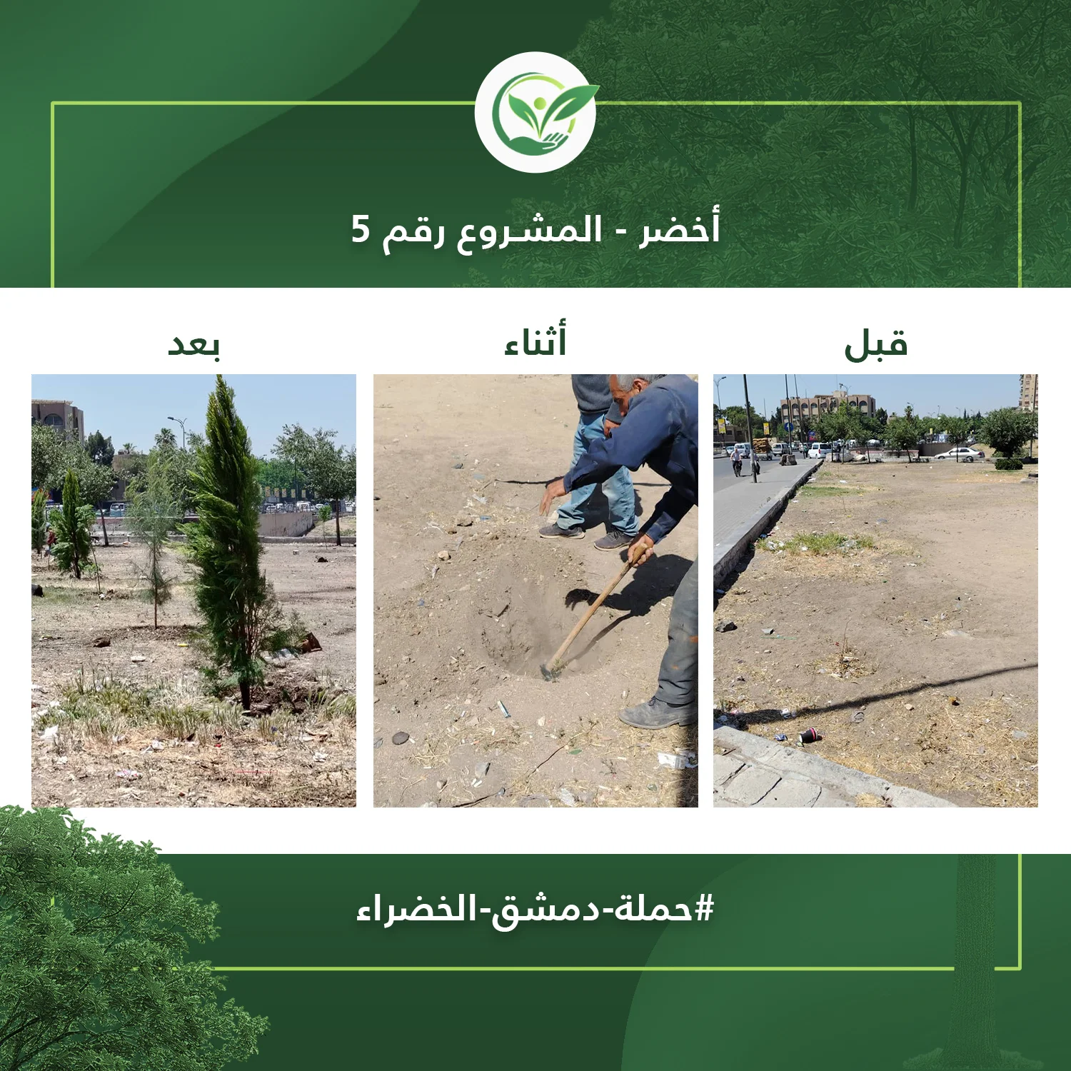 ” AKHDAR ” is a community-driven environmental project that aims to expand green spaces across Syria by involving individuals and organizations in supporting and planting trees in public spaces, to create a healthier environment and enhance the aesthetic quality of urban landscapes in cities and towns.